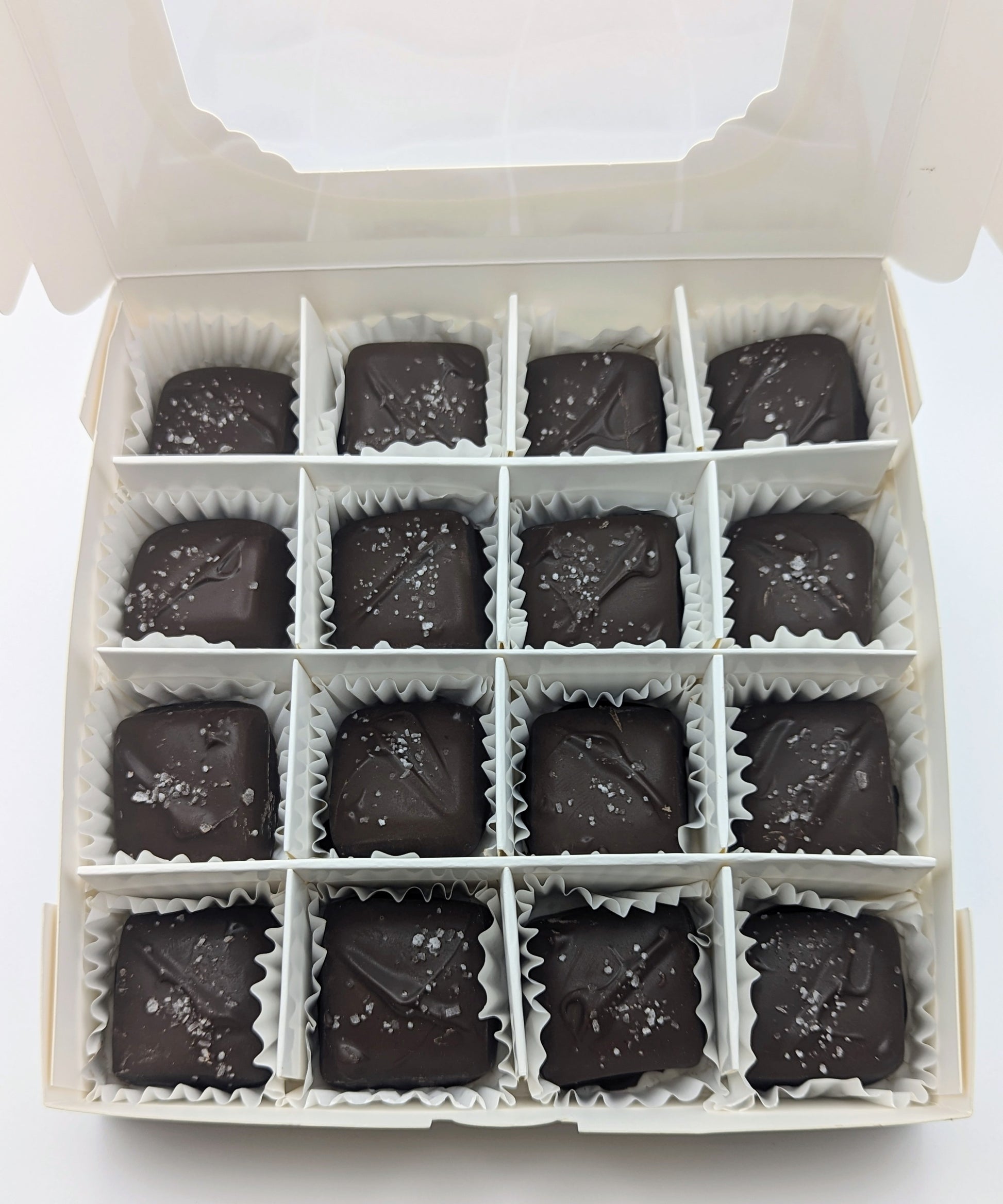 Soft, buttery caramels with a touch of sea salt, hand-dipped in rich milk or dark chocolate. Smooth, chewy, and perfectly balanced - a classic treat made the old-fashioned way.
