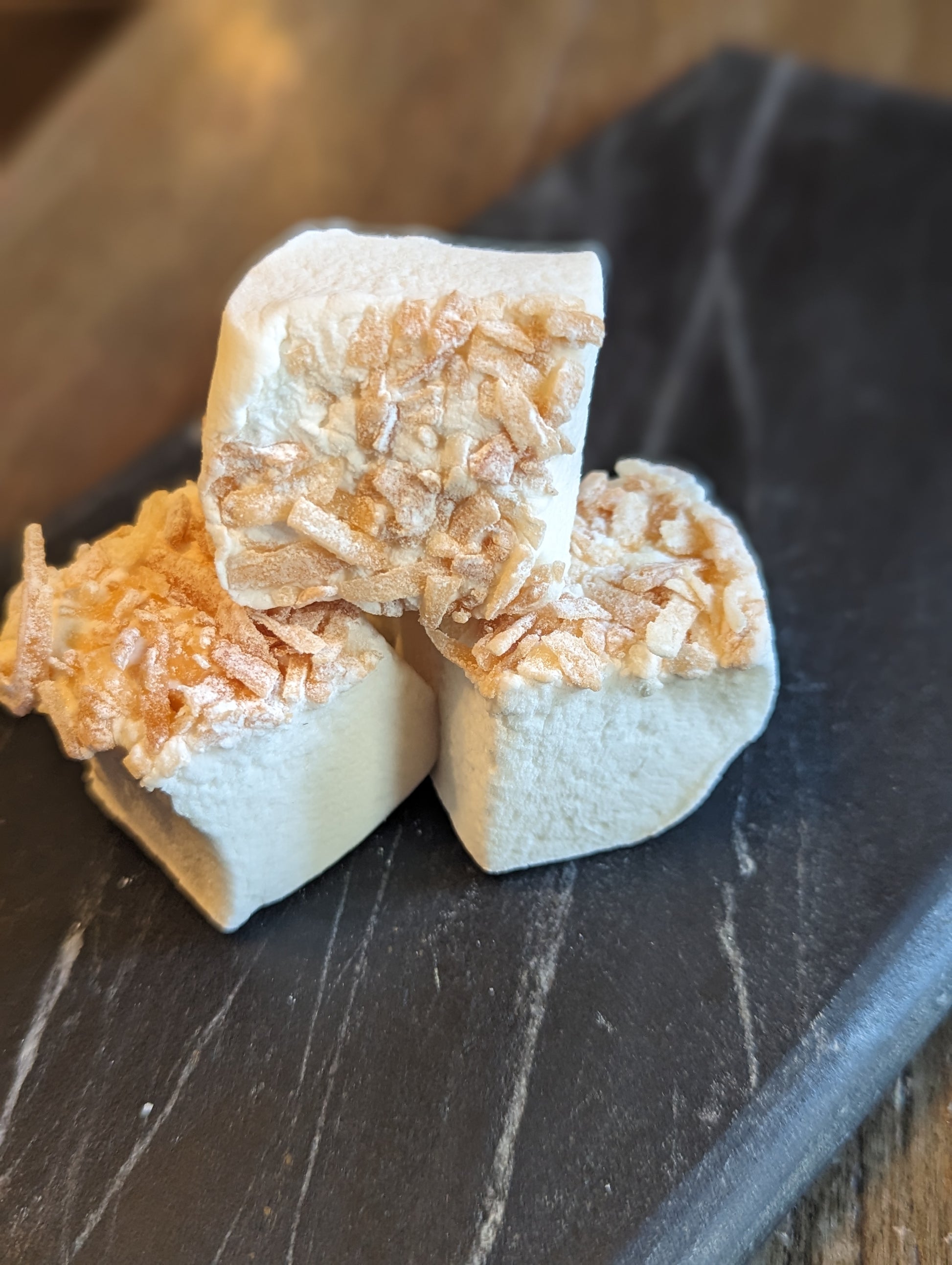 Soft, fluffy marshmallows, hand-cut and made fresh for every order. Dipped in your choice of milk or dark chocolate. Light, sweet, and melt-in-your-mouth delicious - the perfect treat on their own, roasted over a fire, or in your favorite cup of cocoa.
